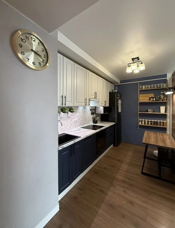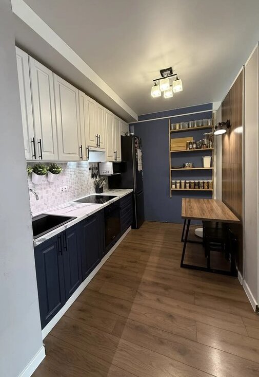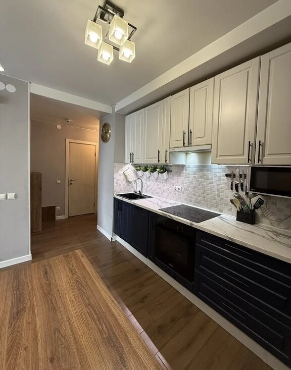 Квартира полностью меблирована и оборудована всей необходимой техникой и утварью (холодильник, микроволновка, посудомоечная машина, плита, духовой шкаф, стиральная машина)