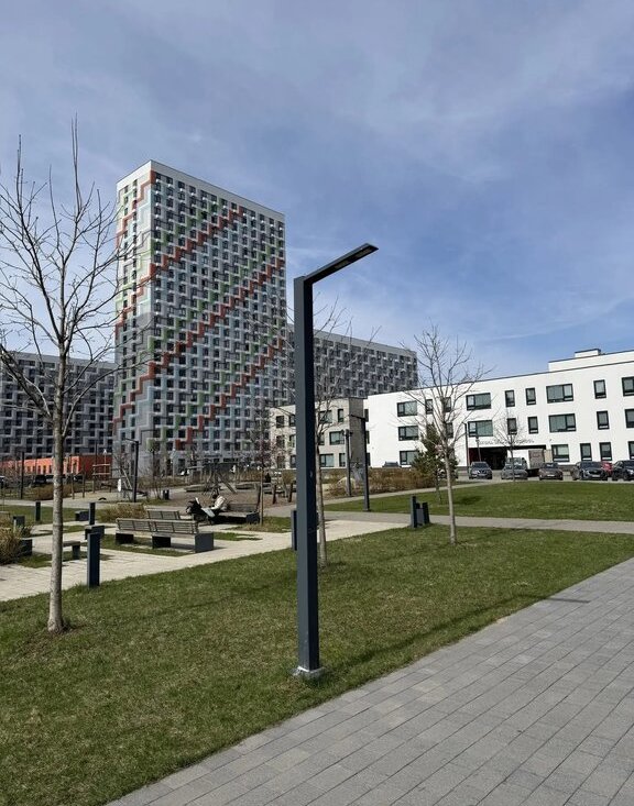 Район обжитой и удобный для жизни: рядом несколько школ и детских садов, поликлиники и частные клиники, магазины, супермаркеты, закрытая территория под видео-наблюдением, крытый паркинг около дома и вся необходимая городская инфраструктура.