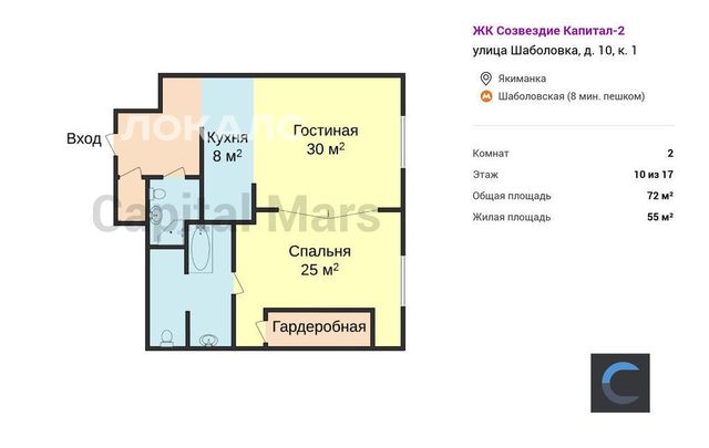 2-комнатная квартира: Москва, улица Шаболовка, 10к1 (72 м²)