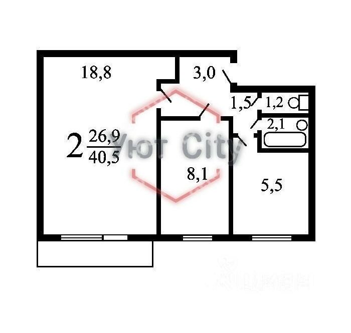 2-комнатная квартира: Москва, улица Шаболовка, 24 (40.8 м²)