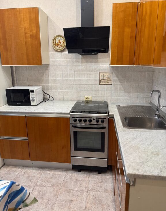 Cталинский дом, изолированные комнаты, высокие потолки. Гарнитурная мебель, вся бытовая техника в наличии. Много мест для хранения.