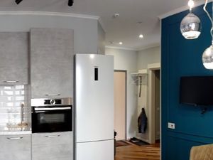 Квартира с индивидуальным интерьерным решением в современном стиле, качественной отделкой, мебелью и техникой для жизни от ведущих брендов (Hotpoint, LG):