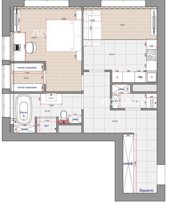 2-комнатная квартира: Москва, улица Василисы Кожиной, 13 (65 м²)
