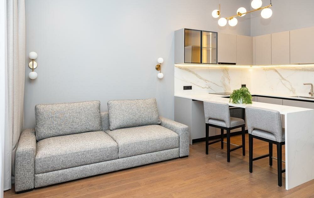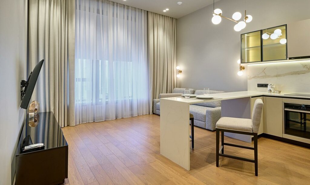Элегантный апартамент с индивидуальным интерьерным решением в современном стиле, всей необходимой мебелью и техникой, разработанной с использованием Smart technology.