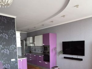 Квартира состоит из гостиной + кухня, спальни, и ванной комнаты. Гостиная, залитая естественным светом, обставлена мягкой мебелью.
