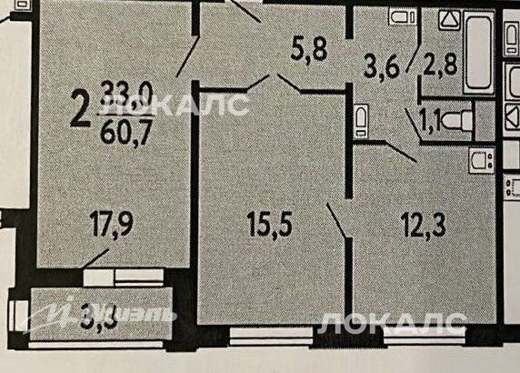 2-комнатная квартира: Москва, улица Вертолётчиков, 4к5 (59 м²)
