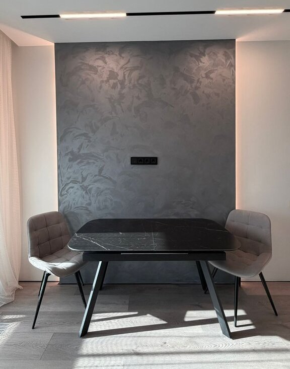 Кондиционирование реализовано в кухне, гостиной и спальне — аккуратно интегрировано через те же выводы, что и приточная система, без лишних визуальных элементов.