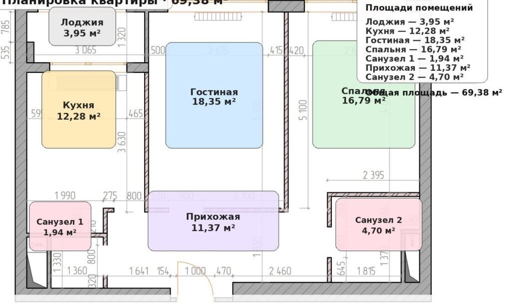 2-комнатная квартира: Москва, улица Виктора Маслова, 2 (69 м²)