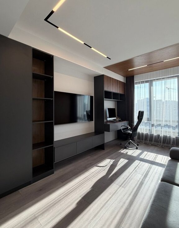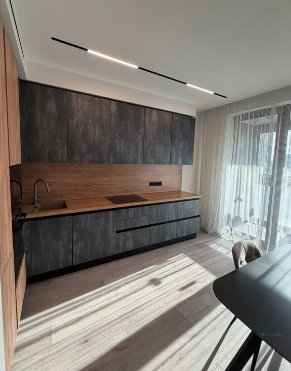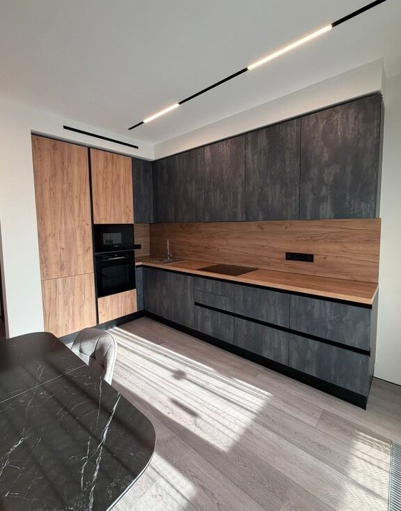 кухню — стильную, лаконичную, с эффектными фасадами, встроенной техникой и удобной рабочей зоной;