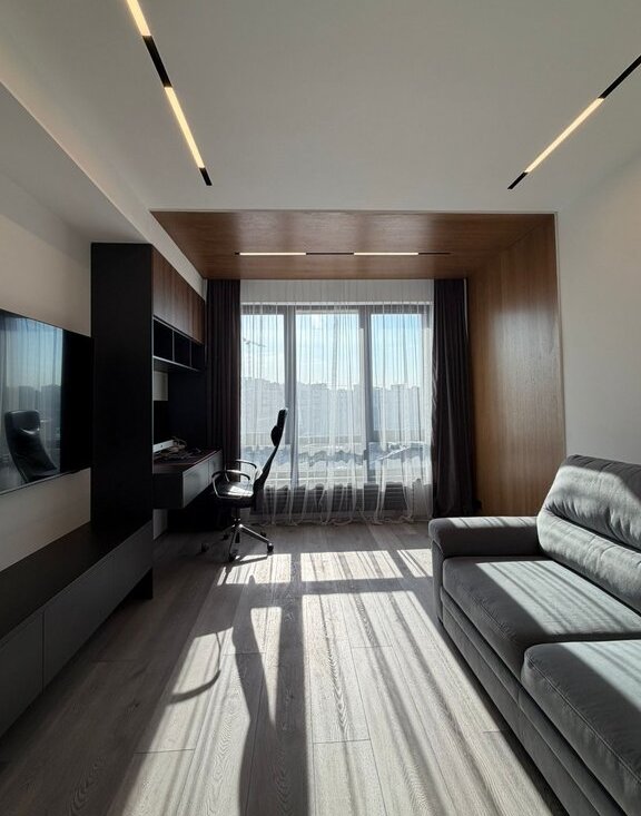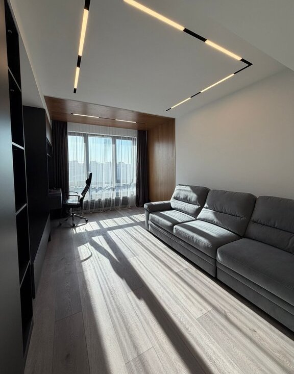 Современная квартира с продуманным до мелочей интерьером в одном из самых привлекательных жилых комплексов на набережной. Интерьер выполнен в актуальном минималистичном стиле: дорогие материалы, спокойная цветовая гамма, много света, встроенные системы хранения и цельное дизайнерское пространство.