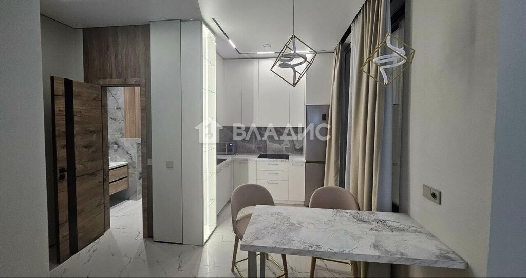 Общая площадь квартиры составляет 54,2 кв. м, жилая — 32 кв. м. В квартире никто никогда не жил. Сдается после только что завершенного ремонта. Полностью оборудованная кухня, мастер спальня, теплые полы, гардеробная, вся бытовая техника и сплит-система в новом состоянии