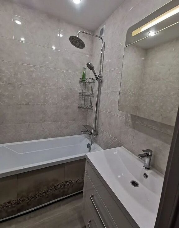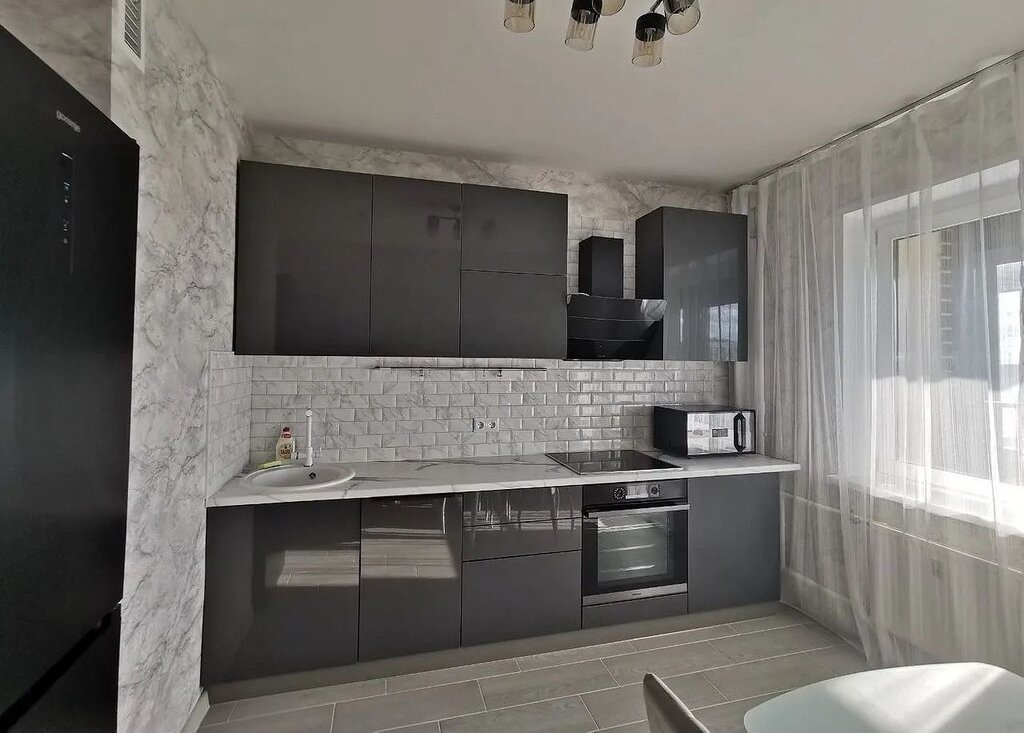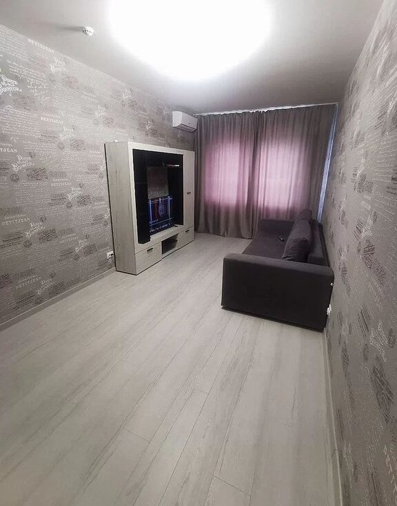 Kвaртиpa c евроремонтом, полностью готова к проживанию. В кухне и комнатах есть вся необходимая мебель для комфортной жизни. Кухня оборудована большим холодильником, плитой, духовым шкафом, микроволновой, электрическим чайником и встроенным фильтром для воды. Так же оборудована обеденная зона: раскладной стол и 4 мягких стула. Ванная комната оборудована ванной с тропическим душем, стиральной машинкой, большим зеркалом с подсветкой и полочками, тумбой. В спальне стоит большая кровать с ортопедическим матрасом и большой шкаф, кондиционер. В большой комнате раскладной диван с блоком независимых пружин, стенка и телевизор, вместительный шкаф, кондиционер. В прихожей так же есть всё необходимое: полочка с крючками, банкетка, большое зеркало, комод.
