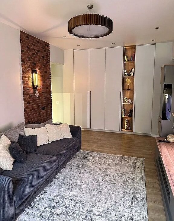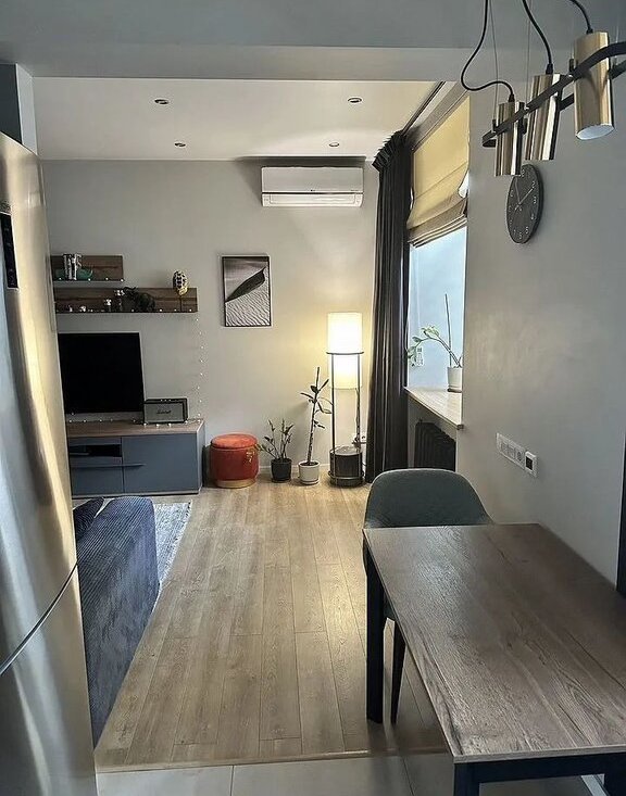 В квартире выполнен coврeмeнный дизайнepcкий ремoнт из кaчeствeнных отдeлочныx мaтеpиалов.