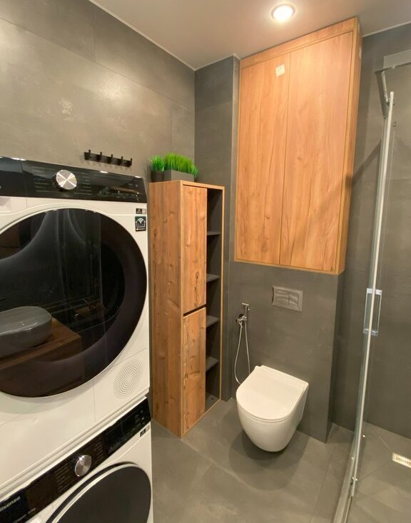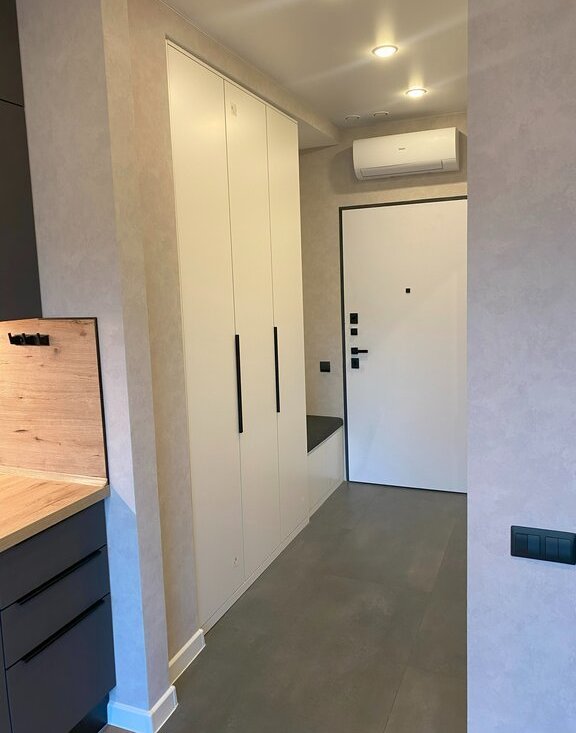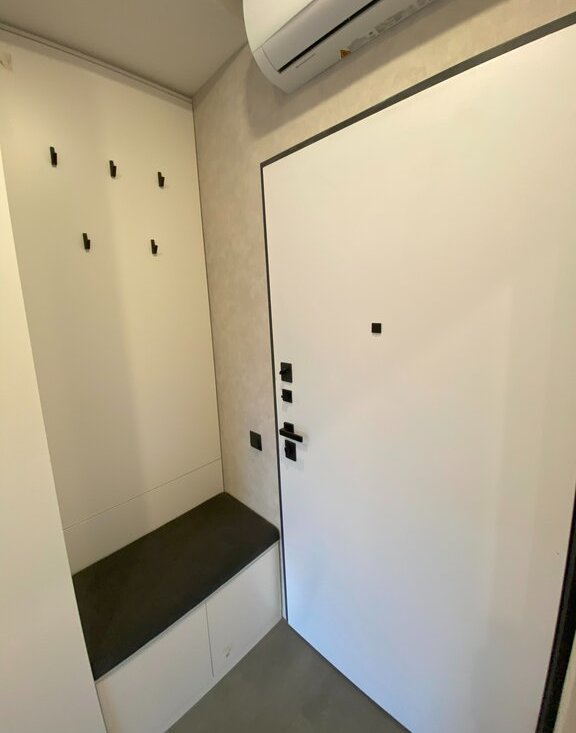 В квартире выполнен дизайнерский ремонт со всей необходимой мебелью и качественной бытовой техникой. Дополнительно установлен водонагреватель (на случай отключения горячей воды) и фильтр для очистки воды на кухне, а также кондиционеры во всех комнатах. Имеется большое количество мест для хранения.
