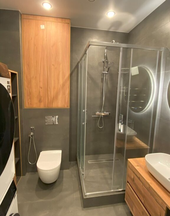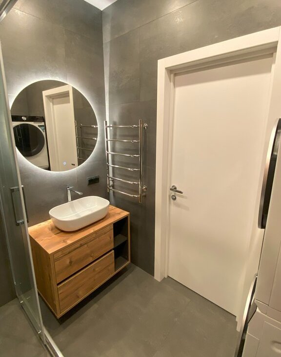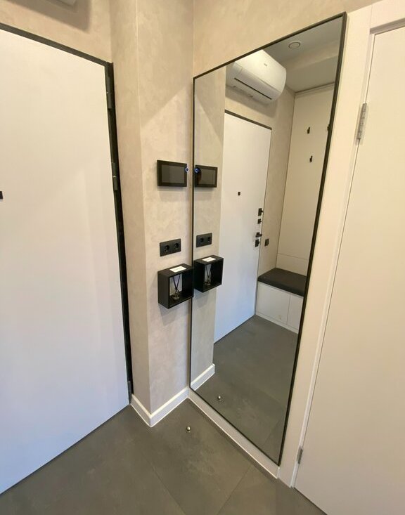 Квартира находится на последнем этаже, что придает ей особое спокойствие и тишину. А панорамное остекление позволяет наслаждаться видами и обилием света.