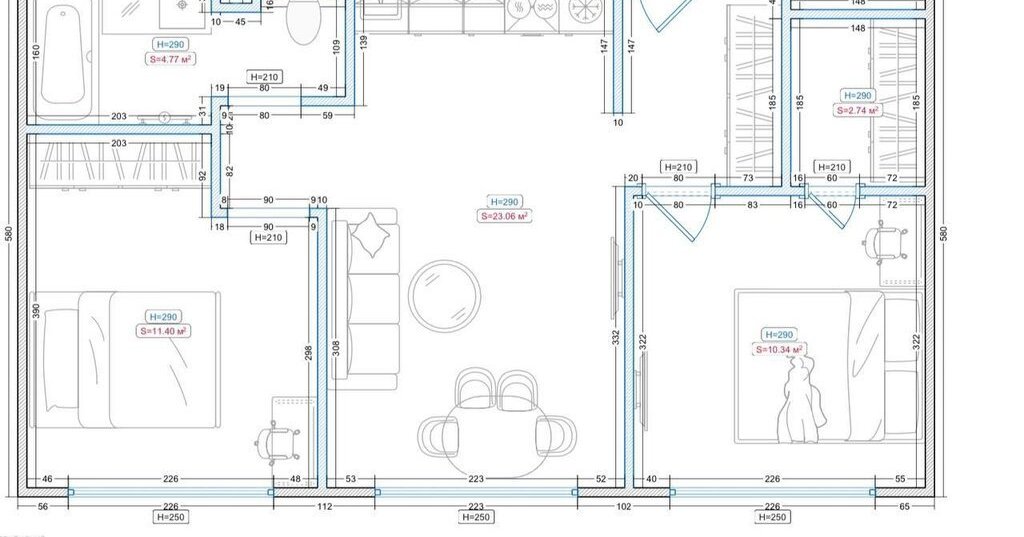 - 2 изолированные спальни, гардеробная, много мест для хранения;