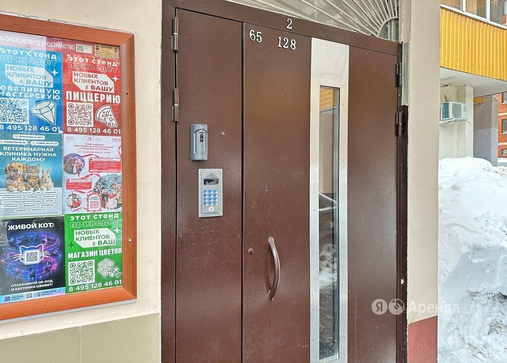 Дом - панельный, окна выходят во двор. В подъезде 2 лифта - 1 грузовой и 1 пассажирский. Во дворе есть парковка за шлагбаумом.