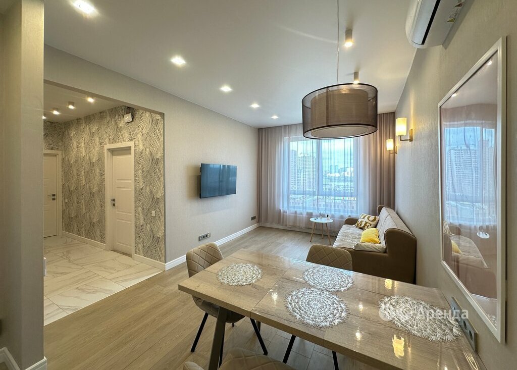 Сдаётся 2-комнатная квартира площадью 61 кв.м. с евроремонтом на 12 этаже в 12-этажном доме на срок от 11 месяцев. Из техники есть: