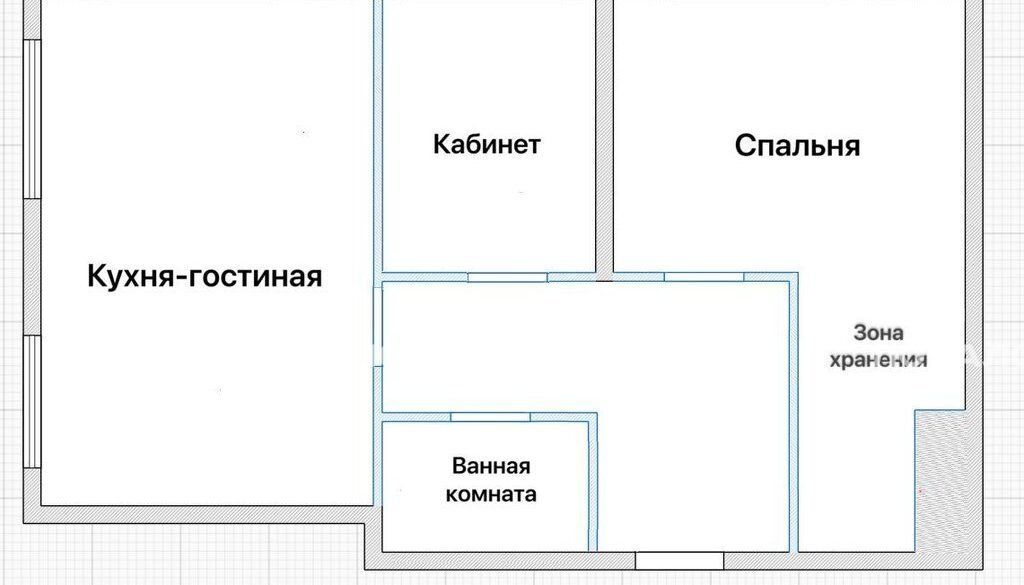 Продуманная евротрешка: полноценная спальня с зоной хранения, уютный кабинет с диваном и большая светлая кухня-гостиная.