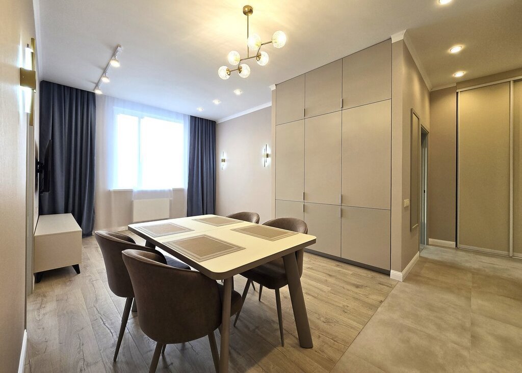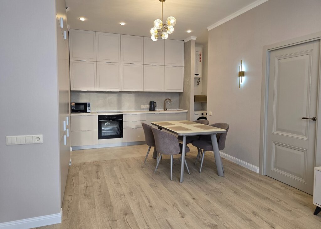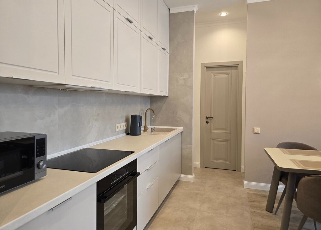 Качественный ремонт по дизайн-проекту. Квартира полностью укомплектована новой мебелью и бытовой техникой (телевизор LG, встроенный холодильник GORENJE, варочная панель, духовой шкаф и СВЧ-печь GORENJE, посудомоечная машина BOSCH, фильтры для очистки воды, электрочайник, утюг, пылесос, стиральная машина LG, водонагреватель).