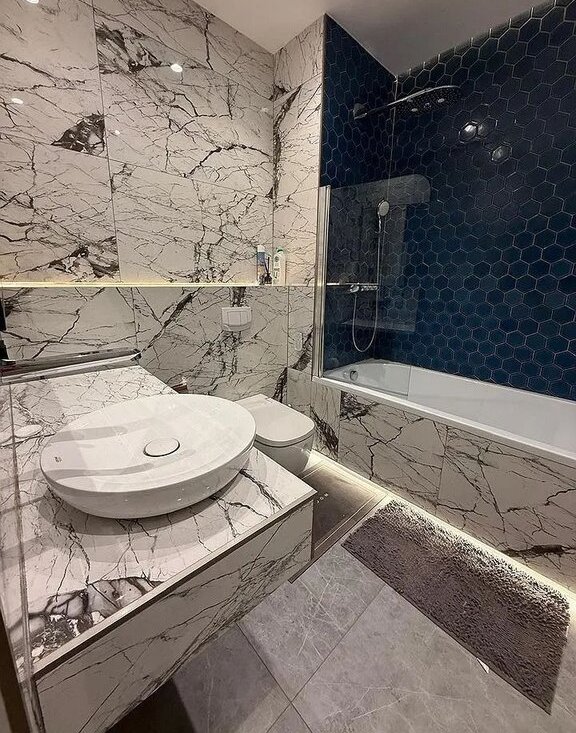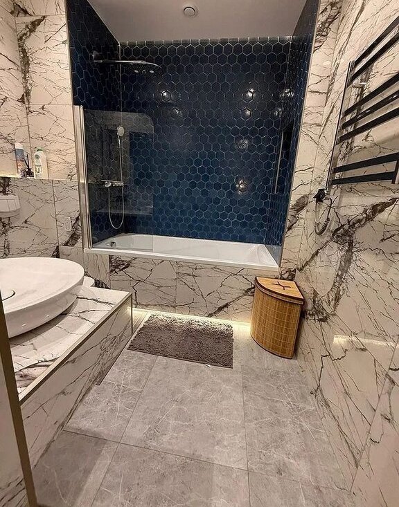 Сантехника: встроенный смеситель Grоhе, смарт‑унитаз VitrА с функцией биде, ванна с душевой системой Grоhе.