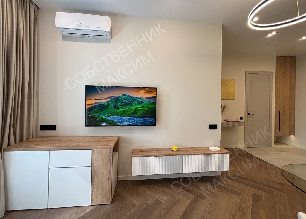 Собственник. Квартира, полностью укомплектована всей мебелью, включая стиральную машинку с сушкой, посудомоечную машинку, двумя кондиционерами, тв с подключенными приложениями с сериалами в каждой из комнат, Яндекс алисой, wifi, холодильником и микроволновкой, капсульной кофемашиной.