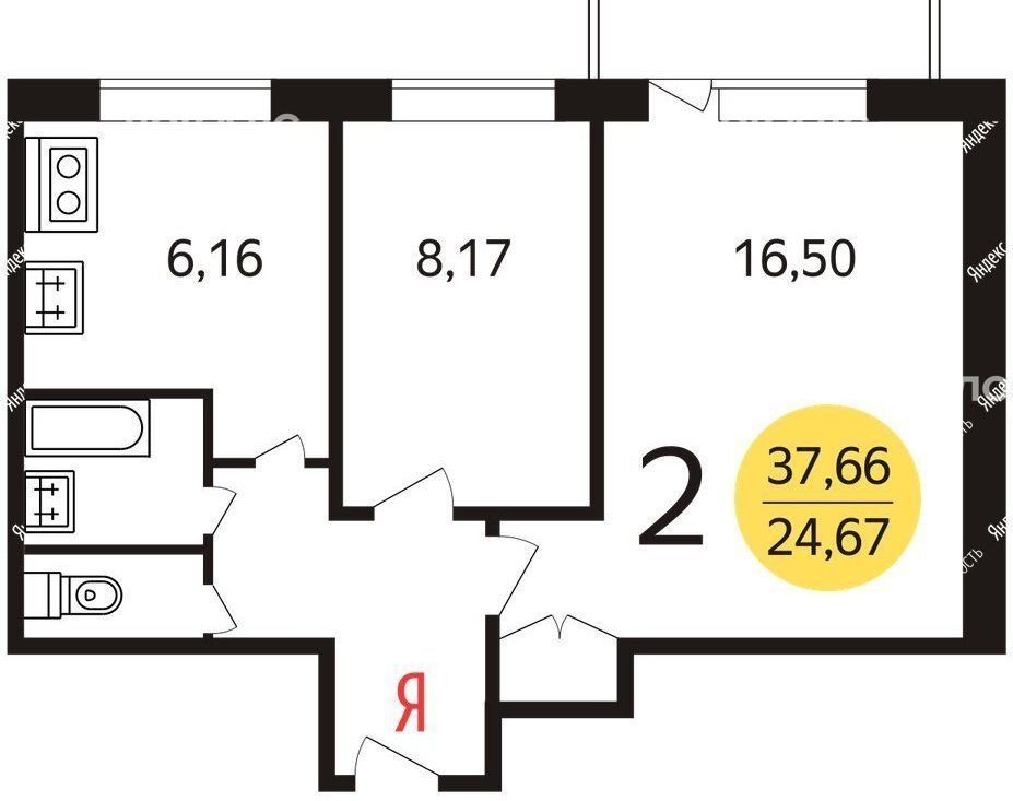 2-комнатная квартира: Москва, Ялтинская улица, 3 (38 м²)