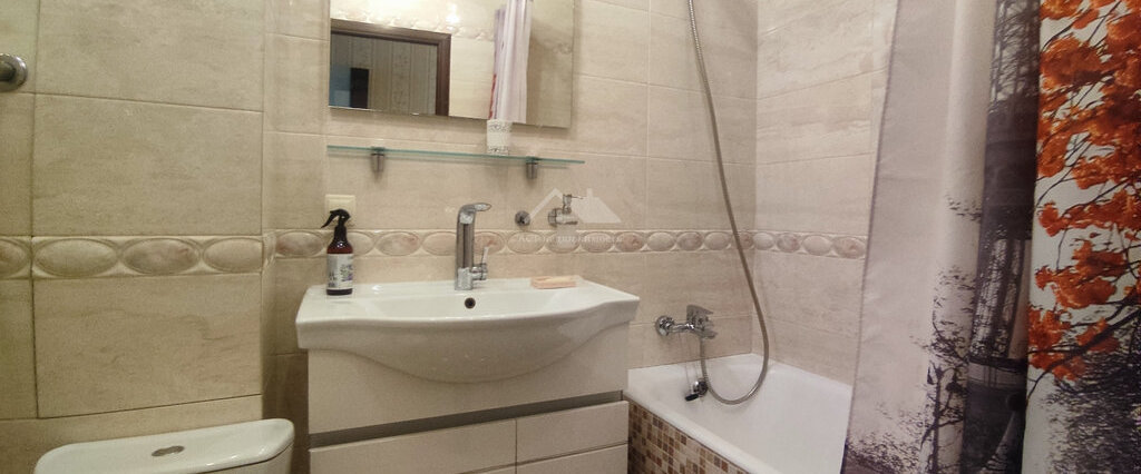 В квартире выполнен качественный ремонт. Мебель и техника: кухонный гарнитур, газовая плита, холодильник, посудомоечная машина, стиральная машина, большой двуспальный диван, двуспальная кровать, журнальный столик, стенка, два гардероба, кондиционер, ТВ-тумба, телевизор.