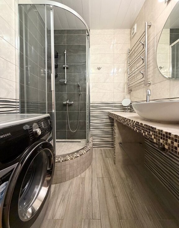 Ванная: душевая кабина, полотенцесушитель, стиральная машина Samsung. Раздельный санузел. Прихожая: 2 шкафа, тумбочка, обувница, вешалка, пылесос. Заст и утепл лоджия: встр шкаф. Интернет. Дмф. Метал. дверь. Закрытый тамбур на 2 квартиры. 2 пассаж лифта. Чистый подъезд, консьерж. Приличные соседи. Возможность парковки рядом с домом.