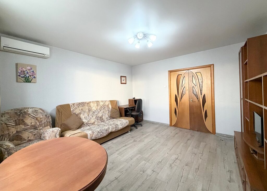 Большая комната 17 кв м: диван двуспальный раскладной, кресло, стенка, ТВ Thomson, стол обед, письм стол, тумба, компьютерное кресло, кондиционер General climat.
