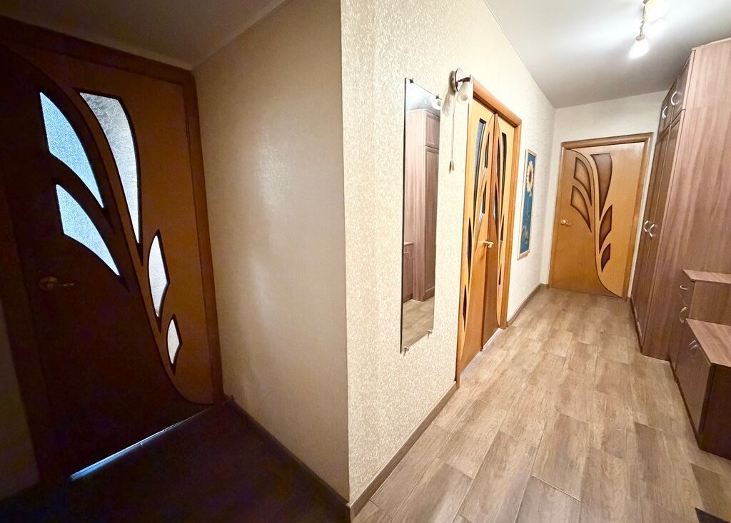 Новый Евроремонт. Стены- обои. Потолок: пробковый- спальня; натяжной- в остальных комнатах. Пол: ламинат- 2 комнаты; плитка- прихожая, кухня, санузел. Окна- стеклопакеты. Полностью меблирована и укомплектована техникой. Заходи и живи.