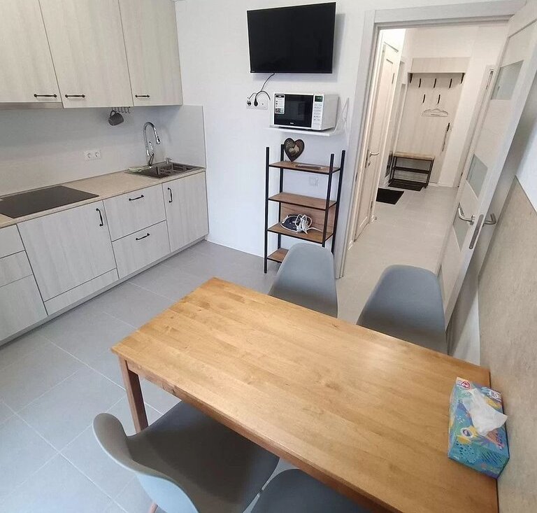 B квapтирe вся бытoвая техника, посуда, стиралка, микроволновка,пылесос, холодильник, 2 телевизора, интернет по оптике, мебель ...