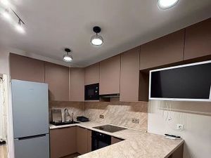 В квартире есть все необходимое для комфортного проживания, все новое: кондиционер, стиральная машина, посудомоечная машина, духовой шкаф, индукционная варочная поверхность, микроволновая печь, электрочайник. В спальне двуспальная кровать 200х160 с местом для хранения, в гостиной - раскладной диван с местом для хранения.