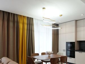 Планировочное решение включает в себя просторную кухню-столовую, две шикарные спальни с большим гардеробными зонами, два просторных санузла с постирочной и сушильными зонами. Лучшие видовые характеристики в комплексе в сторону благоустроенного внутреннего двора и на детскую площадку.