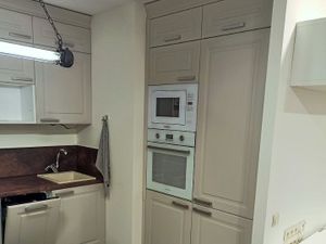 Квартира почти полностью меблирована (спальня и кухня - целиком, в гостиной имеется кресло, раскладывающийся кожаный диван, письменный стол), есть кондиционер (в спальне), посудомоечная и стиральная машины, бойлер, Internet от Акадо.