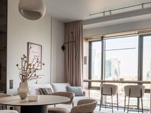 талантливого дизайнера с использованием исключительно премиальных материалов , мебель и техника от ведущих производителей. Квартира планировалась для собственного проживания, по качеству ремонта ей нет равных в комплексе. Стильное пространство, продуманное до мелочей, идеально для