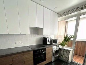 После евроремонта, обставлена новой, современной мебелью и необходимой бытовой техникой, включая посудомоечную машину, духовку, стиральную машинку с сушкой и кондиционер. Просторная кухня, санузел с джакузи, панорамные окна, телевизор. На полу паркет - красное дерево. Подземный паркинг, тихий, зеленый двор с прудом, зонами отдыха и детскими площадкой.Дом находится в районе с развитой инфраструктурой. Рядом с домом несколько магазинов и кафе, аптека, салон красоты, фитнес центр и бассейн, стоматология и поликлиника. Школа и детский сад в пределах пешей доступности.
