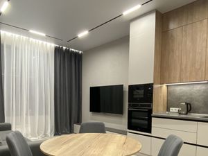 Планировка: кухня-гостиная, спальня с балконом, ванная комната, гостевой санузел, гардеробная.