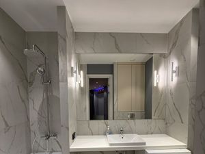 В жилом комплексе расположен бассейн, фитнес зал с тренажёрами, сауна для жителей дома бесплатное посещение. Бар, кафе. подземный паркинг.