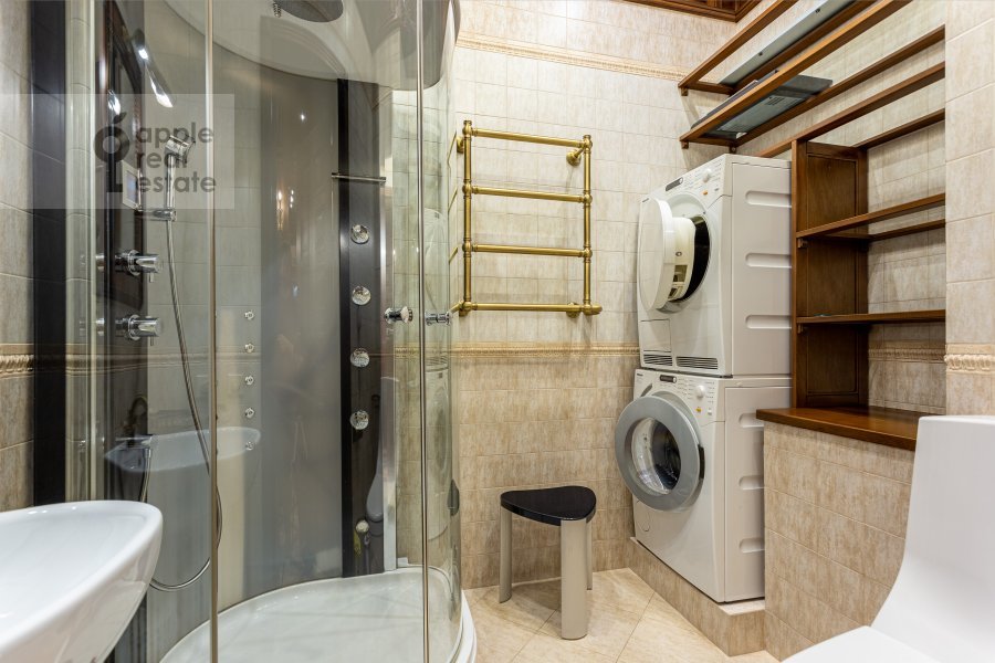 Чудесная 3-комнатная квартира в элитном доме. 3 / 7 этаж. Спален: 2, санузлов: 3. Общая площадь: 162 кв.м. Потолки 3.2 м. Ремонт в уникальном авторском стиле. Квартира полностью с мебелью, вывоз обсуждается. Огороженная, охраняемая территория. Подземный паркинг, машиноместо входит в стоимость. Окна в тихий двор. Есть гардеробная комната. В наличии: посудомоечная машина, холодильник, кондиционер, бойлер, душевая кабина, ванна, постирочная комната, стиральная машина, сушильная машина, подогрев полов. Телевизор, высокоскоростной интернет. Можно с детьми.