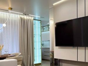 Квартиру с дизайнерским ремонтом украшает художественный паркет и итальянская мебель. Из техники имеются кондиционер, холодильник, телевизор, микроволновка, посудомоечная и стиральная машины. Планировка удобная: один совмещённый и один отдельный санузел, что позволяет комфортно разместиться семье или компании. Окна длинных балконов выходят во двор в разные стороны. Также есть сауна, которая позволит Вам расслабиться и сделает вечер прекрасным.