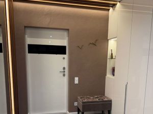 Квартира с дизайнерским ремонтом, полностью благоустроенная для постоянного проживания, вся бытовая техника в наличии. 2 гардеробные комнаты- для верхней одежды и обуви, и для хранения вещей. Просторный санузел - ванна, душевая кабина. Гостевой санузел.