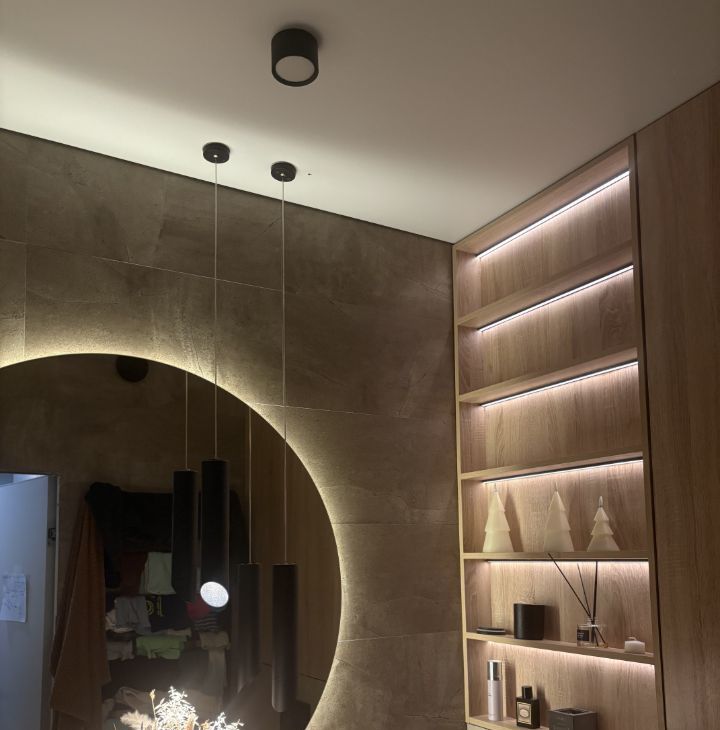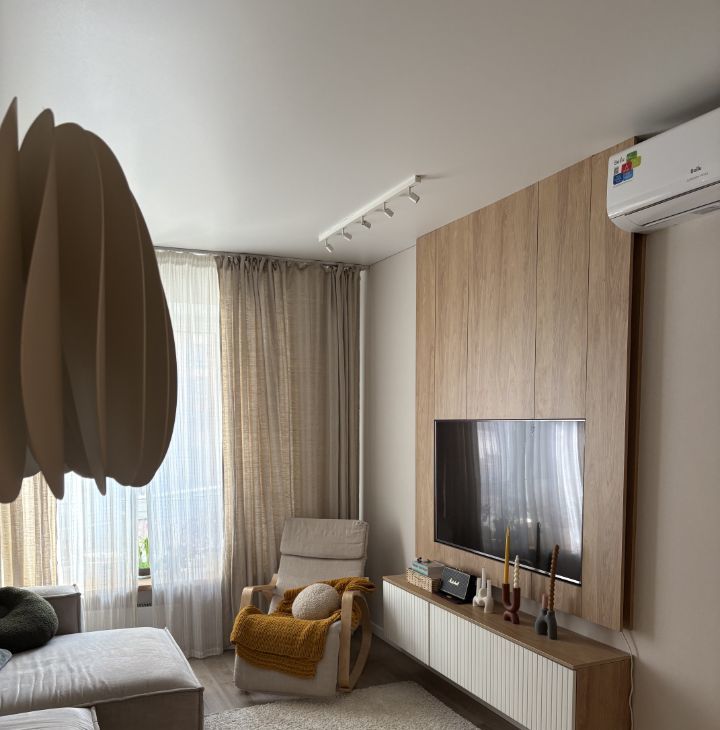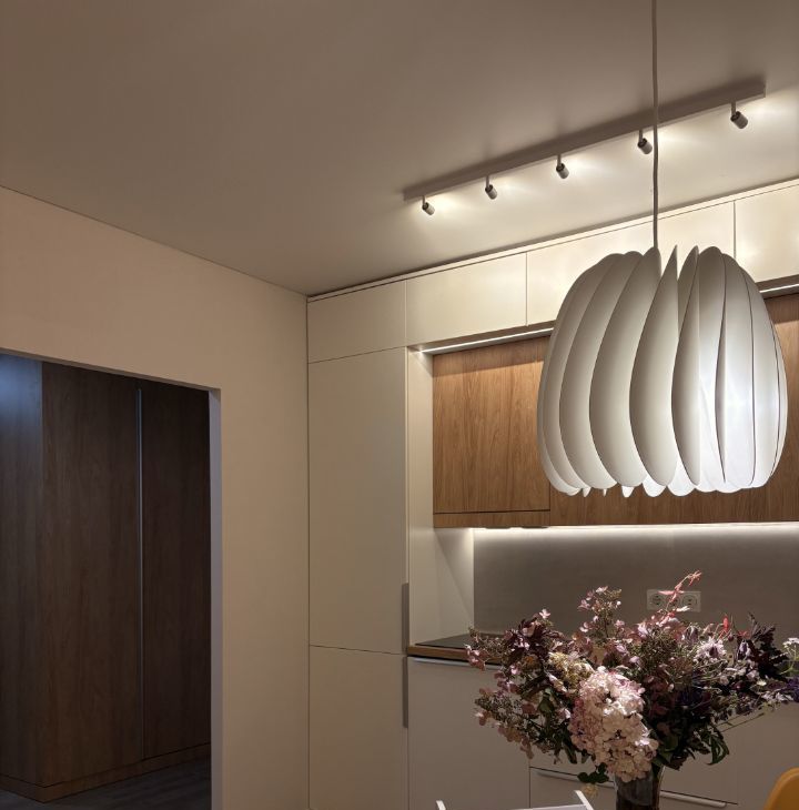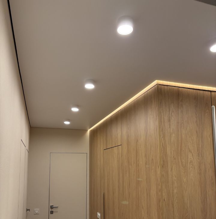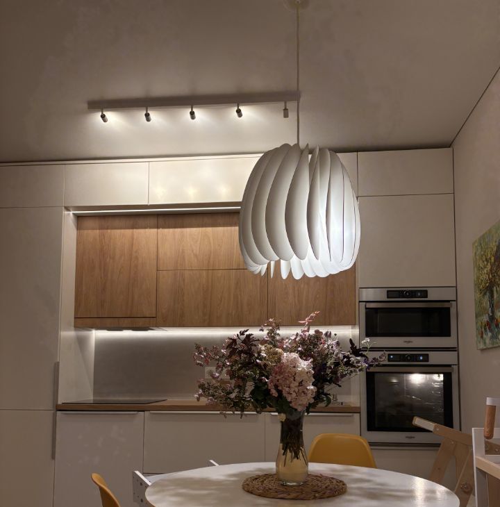 Квартира с хорошим красивым ремонтом, делали для себя (новые полы, новые потолки с теневыми профилями и подсветками, обои, ремонт в ванной комнате, новая сантехника), новая входная дверь, скрытые межкомнатные двери, сценарии освещения. В квартире очень тихо, соседи не беспокоят вообще. Потолки стали прилично выше, чем были от застройщика.