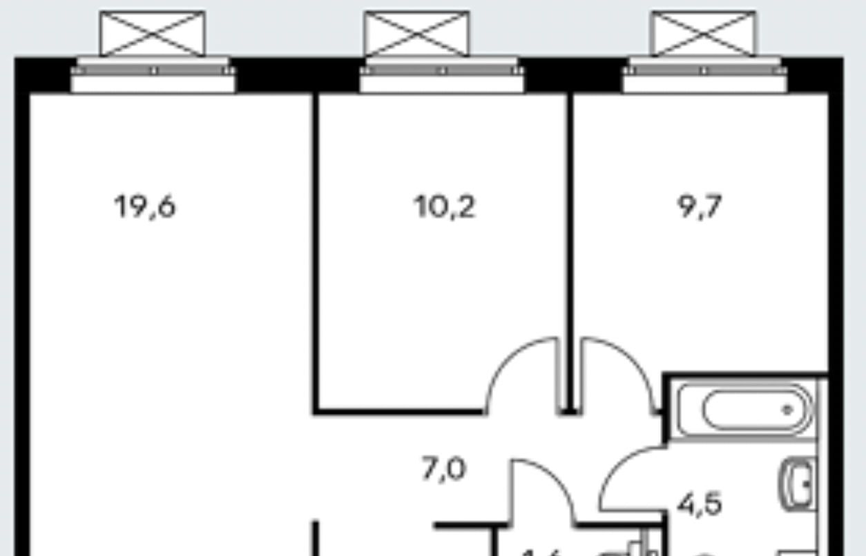 Продам евротрешку 51.6 м2: кухня-гостиная 19.6 м2, две спальни: 10.2 и 9.7м2, ванная комната 4.5 м2, второй санузел (переделываем его сейчас в гардеробную, но можно оставить и санузел).