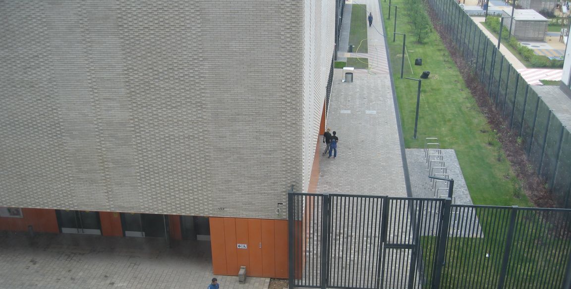 Напротив подъезда вход в школу и детский сад.