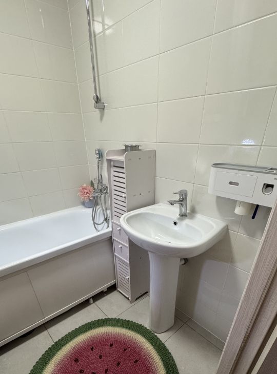 В квартире сделан косметический ремонт, поэтому она готова к проживанию. Удобная планировка включает две изолированные комнаты, гостинную и одну ванную комнату. Окна выходят во двор, поэтому обеспечивается тишина и покой.