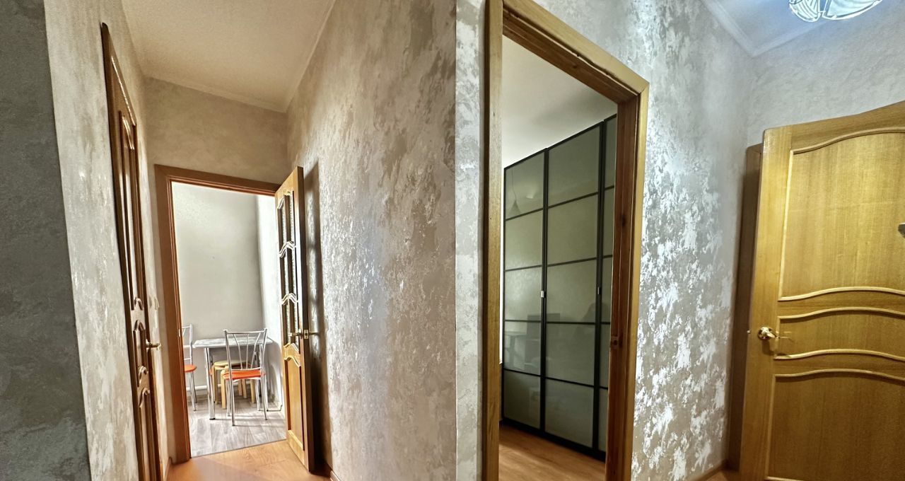 Сдаётся на длительный срок уютная трёхкомнатная квартира. Выполнен современный ремонт, установлены стеклопакеты. Комнаты смежено-изолированные. В квартире имеется вся необходимая для комфортной жизни мебель и техника. Чистый подъезд. Въезд во двор через шлагбаум, большая парковка. Рядом с домом современная школа. Район с хорошо развитой инфраструктурой.