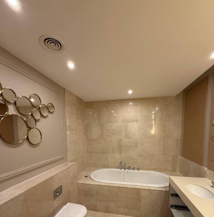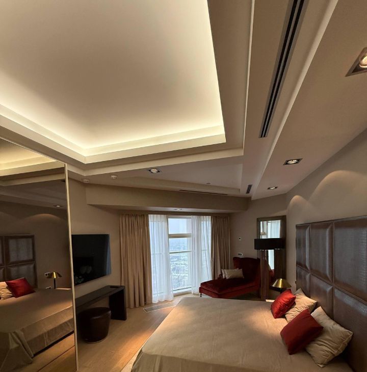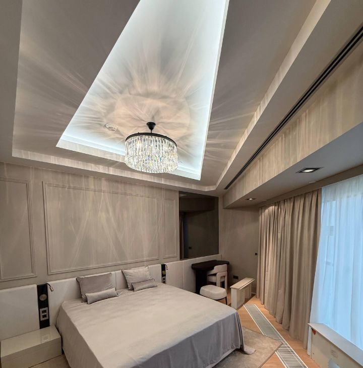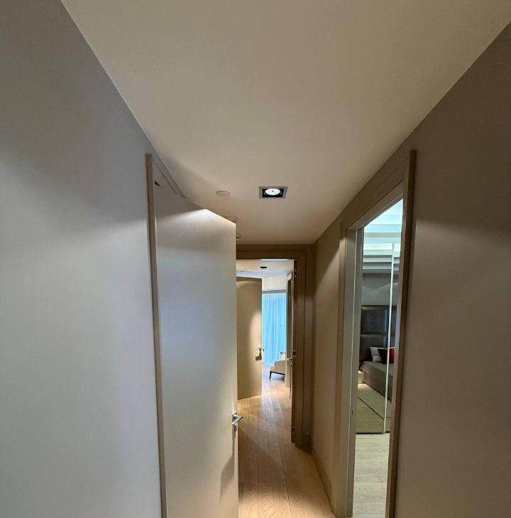 Апартаменты оформлены в дизайнерском стиле, что придаёт им уникальность и уют. В квартире три комнаты, включая просторную кухню 20 кв. м. Здесь есть вся необходимая техника: кондиционер, холодильник, посудомоечная и стиральная машины, телевизор. В комнатах и на кухне имеется удобная мебель. Три совмещённых санузла оборудованы как ванной, так и душевой кабиной, что делает проживание максимально комфортным.