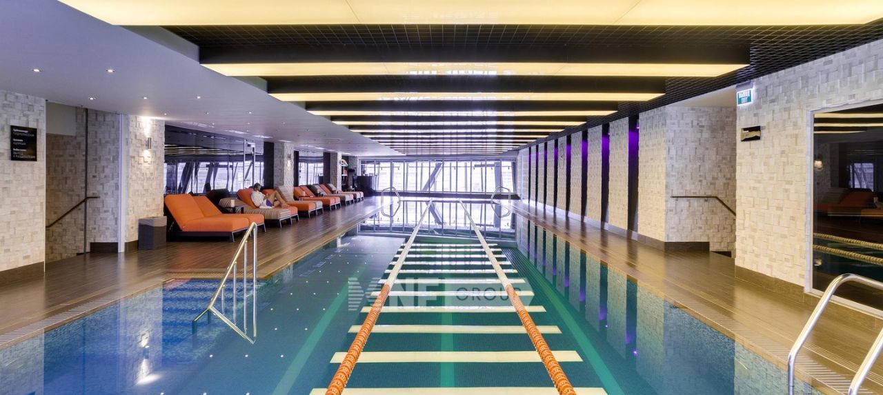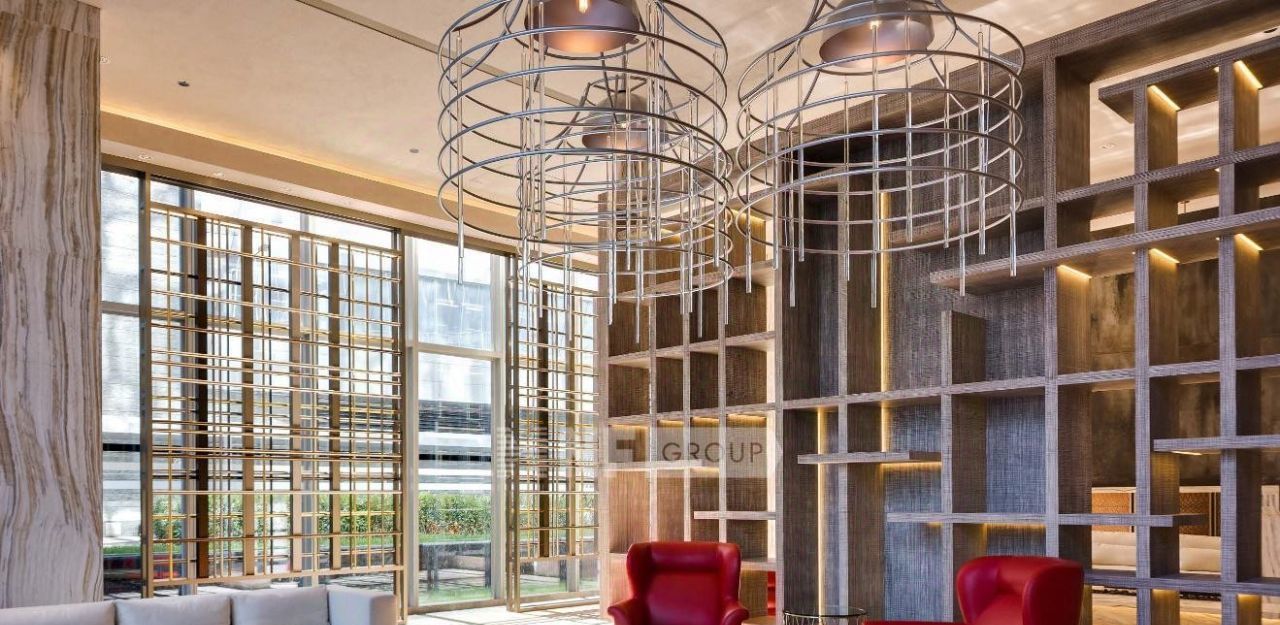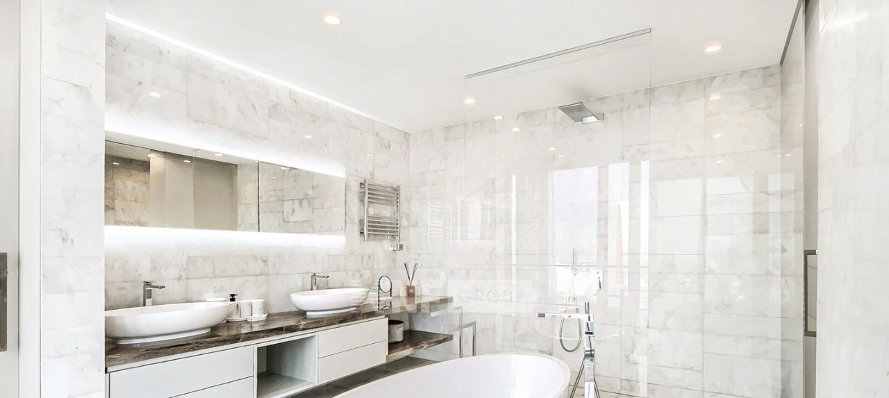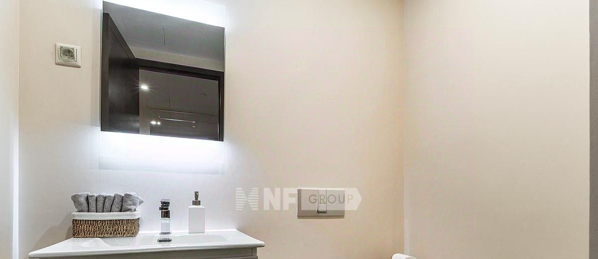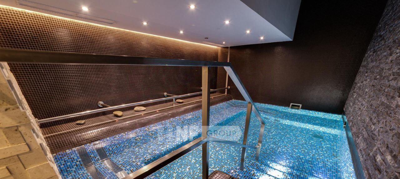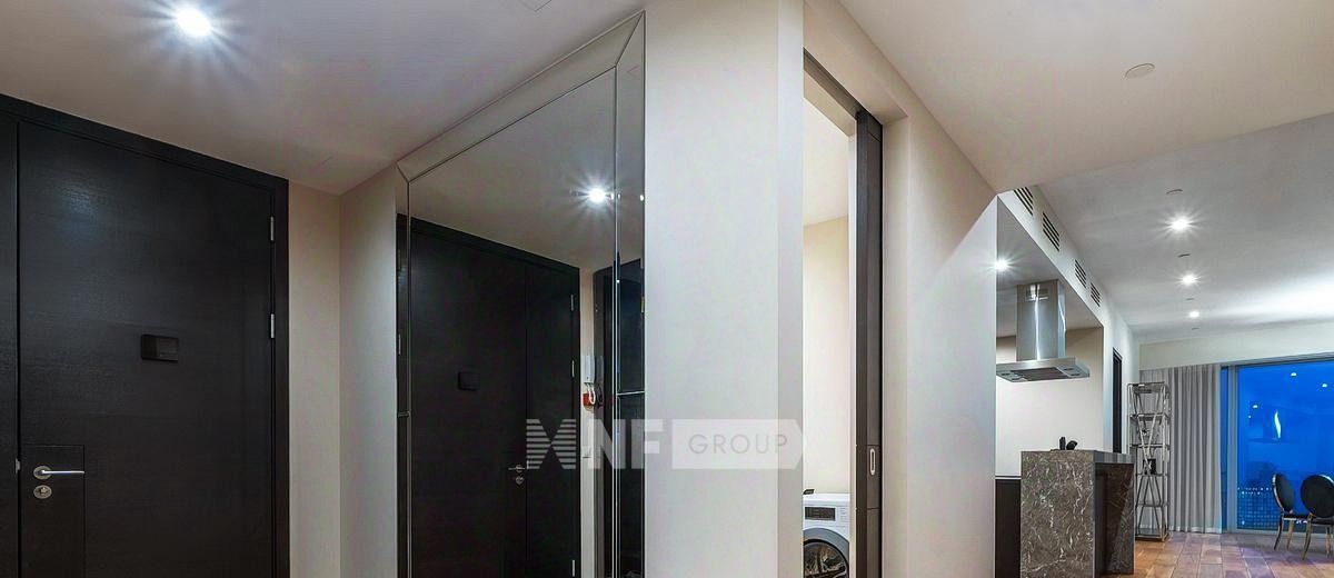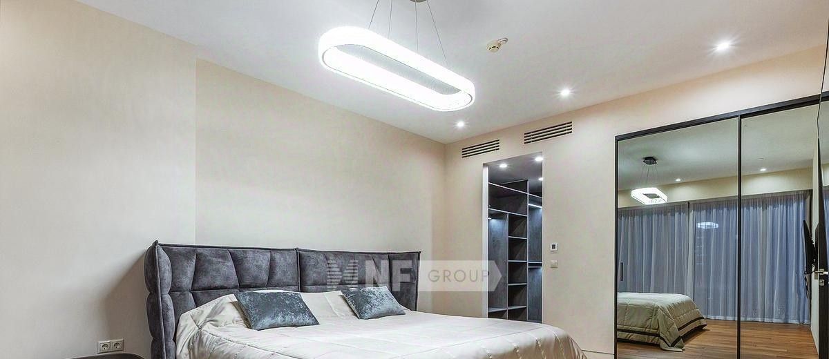 Интерьер дополнен автоматическими блэкаут-рольставнями, зеркалами, люстрами, дизайнерскими шторами и встроенными шкафами. В мастер-спальне: телевизор Samsung 55, кровать и матрас King Koil Monaco, итальянские тумбочки. В гостиной телевизор Samsung 75 и комод ручной работы. Кухня от застройщика с немецкой техникой, ванные комнаты с итальянской сантехникой.