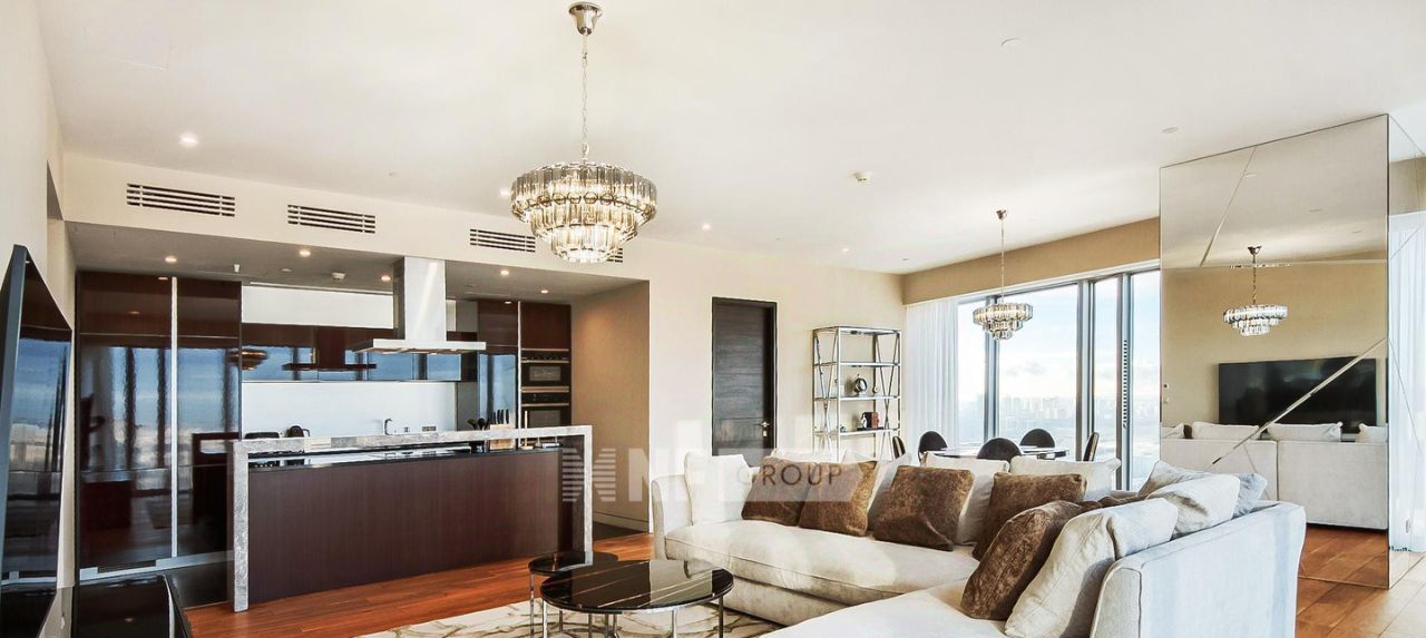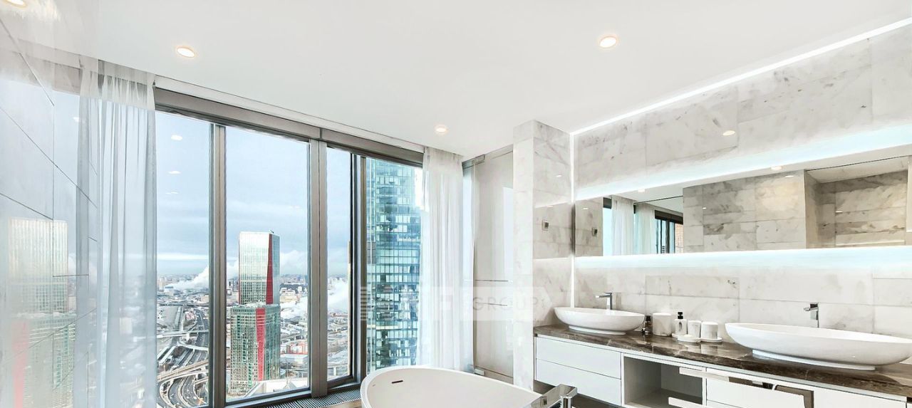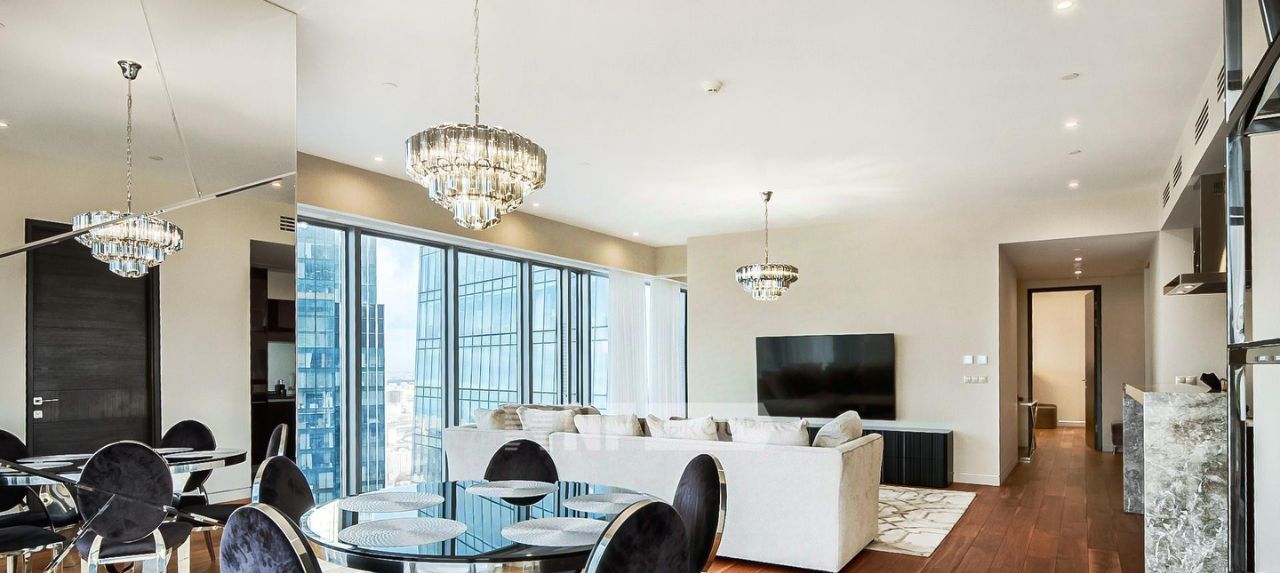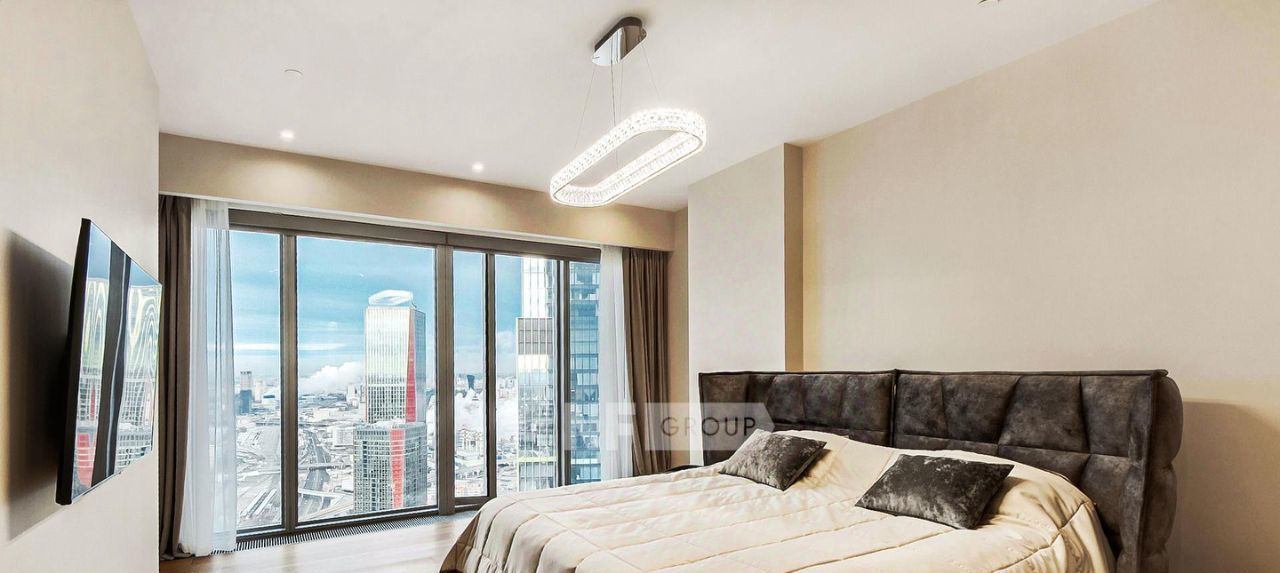 Лот: 101290. Предлагается видовой апартамент с новой дизайнерской отделкой в небоскрёбе "ОКО" в "Москва-Сити". Современная классика, дорогие материалы, мебель и техника премиум-брендов.